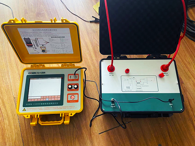 GDBN-OH01電纜測試多次脈沖耦合器與GDBN-C2000電纜多次脈沖故障測距儀和高壓信號發(fā)生器配合使用,用于檢測各種電力電纜的高阻泄漏故障、閃絡(luò)性故障、低阻接地和斷路故障。GDBN-OH01為GDBN-C2000電纜多次脈沖故障測距儀提供脈沖信號耦合通路,同時實現(xiàn)了與高壓設(shè)備的電氣隔離。它采用目前國際上最先進的“多次脈沖法”技術(shù),使電纜故障波形的判斷變得簡單方便。