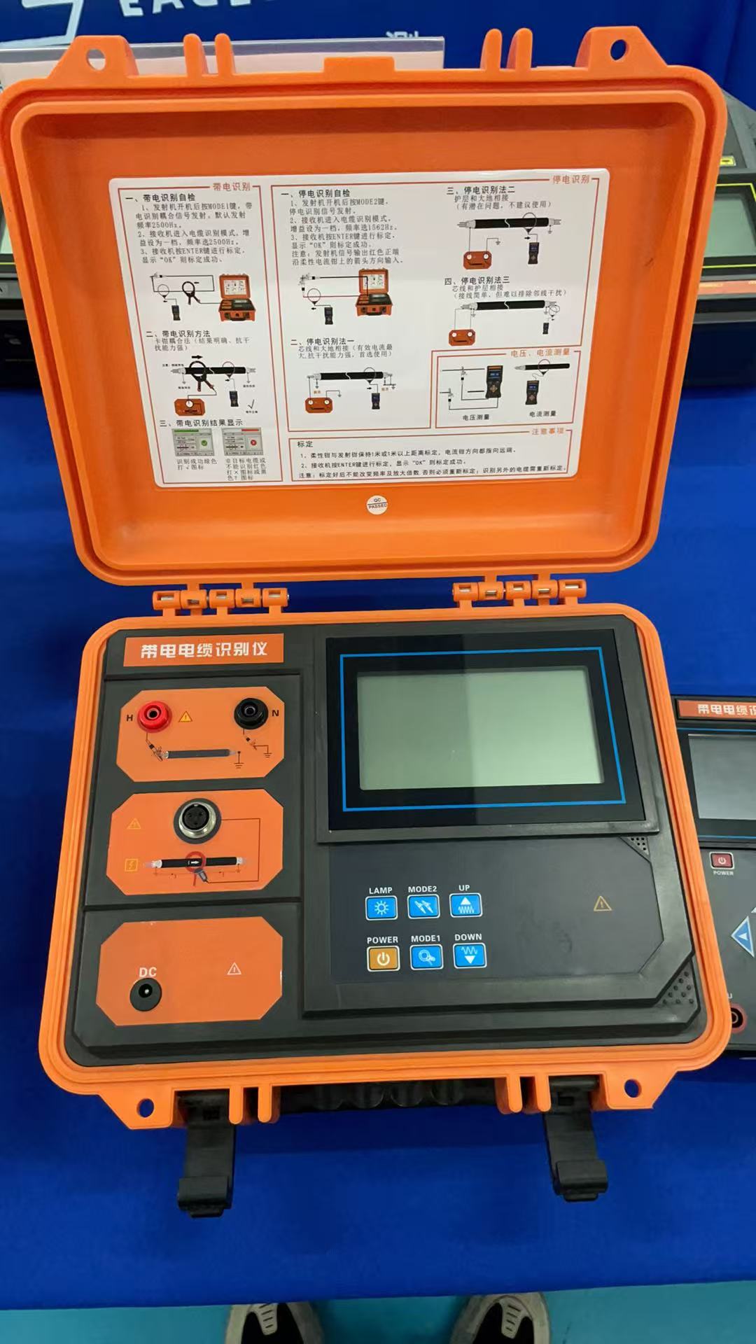 發射機:帶電電纜識別、停電電纜識別時發射信號給目標電纜,內置大功能率可充鋰電池,自動阻抗匹配,全自動保護。發射機采用一體化專用工具箱式設計,用聚丙烯塑膠作為原料,添加新型復合填充料一次注塑成形,密度小、強度、剛度、硬度、耐磨性、耐熱性、絕緣性能更優越,其箱體能承受約200kg的壓力,主機超大LCD實時顯示剩余電池電量,白色背光、發射信號動態指示,一目了然。